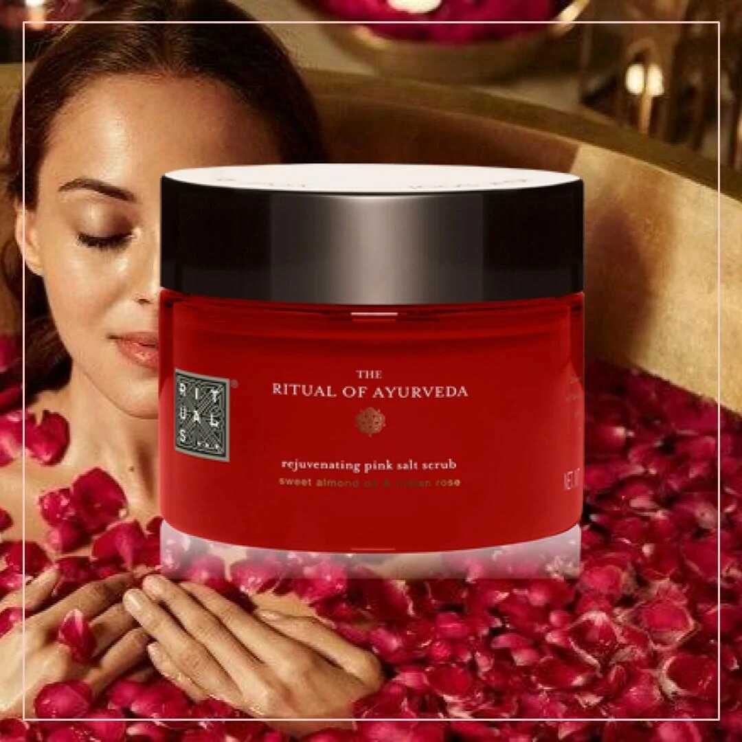 Rituals má peelingy so soľnými alebo cukrovými čiastočkami. Tento peeling obsahuje himalájsku soľ, indickú ružu a mandľový olej. Soľ krásne prečistí a dezinfikuje pokožku, ruža ju upokojí a zvláčni a olej ju zregeneruje a zlepší jej elasticitu.